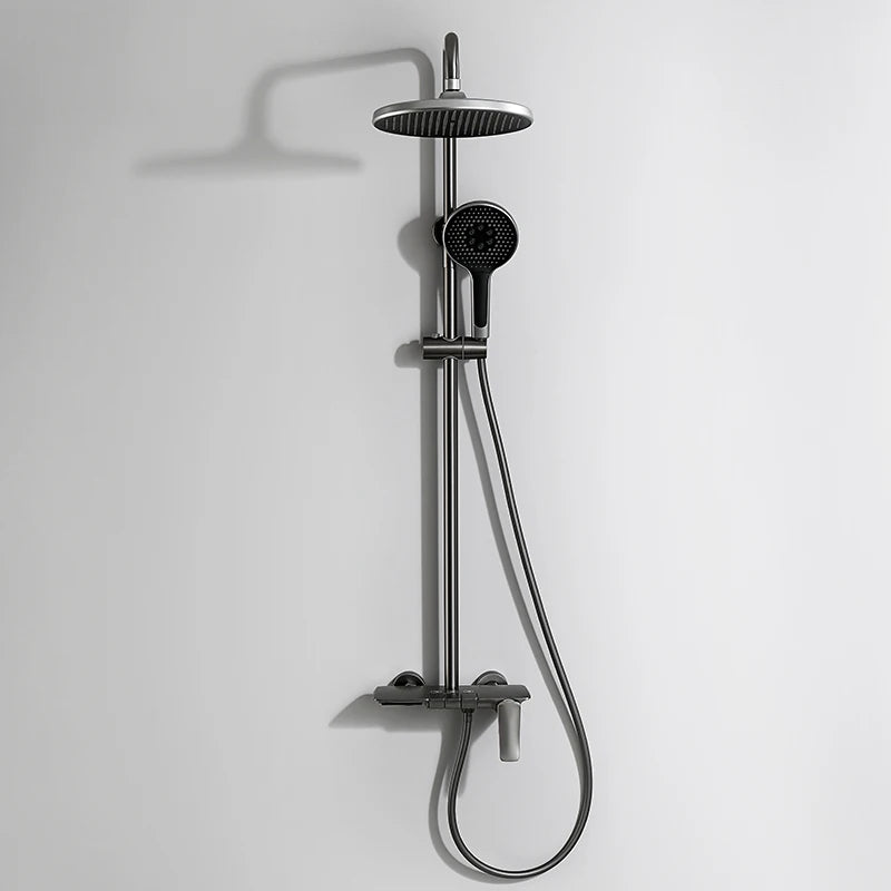The Luxury Shower System Set is a premium addition to any modern bathroom. Featuring a 3-way rainfall shower mixer, thermostatic control, this set offers a spa-like experience at home. Available in Black, Grey, Chrome, and Gold finishes, it combines elegance with functionality. The set includes a 10-inch overhead shower, a 3-function handheld shower, and a tub faucet, all made from high-quality brass and ABS materials for durability and performance.