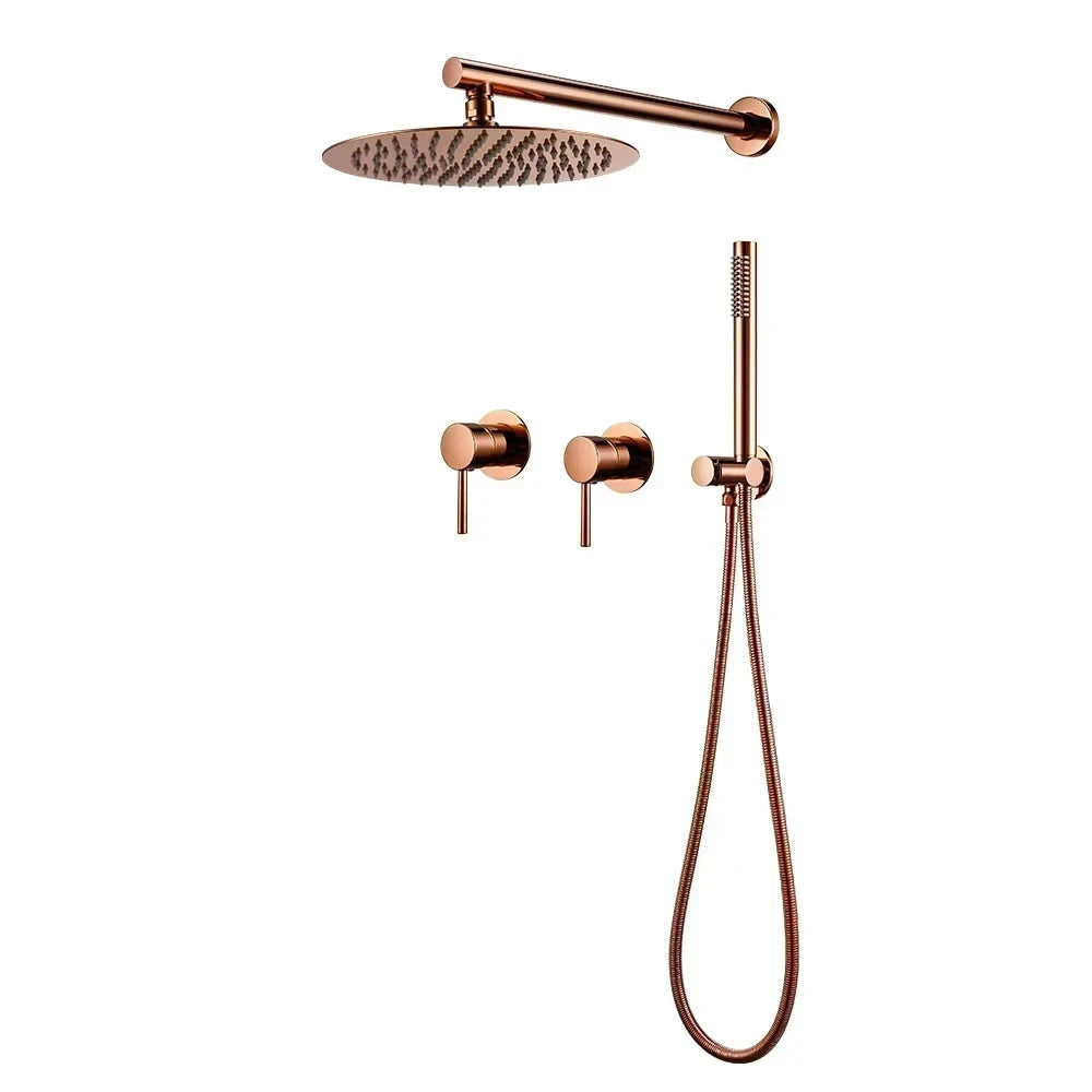 Transform your bathroom into a luxurious spa with the ShowerEase Rainfall Shower Set. This elegant wall-mounted shower mixer features a stunning rose gold finish and is made from high-quality brass for durability. The set includes a rainfall shower head (8/10/12 inch options), handheld shower head, shower hose, brass bracket holder, shower head arm, decorative cup, and a shower mixer valve control with pressure balancer. Designed for modern simplicity, this shower set combines style, functionality, and performance.